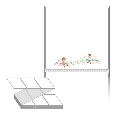 롤라벨보다 편리한 제트라벨, 규격코드: ZL9090, 디자인코드: DP093(멜로디 속에 아이들), 90 x 90.133 (mm)