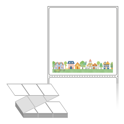 롤라벨보다 편리한 제트라벨, 규격코드: ZL9090, 디자인코드: DP098(녹색 에코 타운), 90 x 90.133 (mm)