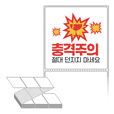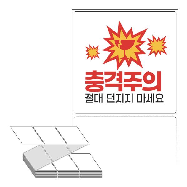 롤라벨보다 편리한 제트라벨, 규격코드: ZL9090, 디자인코드: FA130(충격주의 절대 던지지 마세요), 90 x 90.133 (mm)