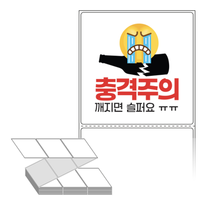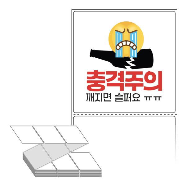 롤라벨보다 편리한 제트라벨, 규격코드: ZL9090, 디자인코드: FA134(충격주의 깨지면 슬퍼요 ㅠㅠ), 90 x 90.133 (mm)