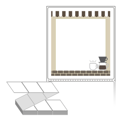 롤라벨보다 편리한 제트라벨, 규격코드: ZL9099, 디자인코드: DA242(창 넓은 카페에서), 90 x 98.6 (mm)
