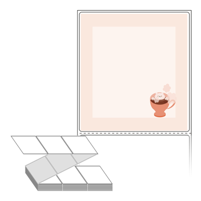 롤라벨보다 편리한 제트라벨, 규격코드: ZL9099, 디자인코드: DA442(따뜻한 커피속에 퐁당~~), 90 x 98.6 (mm)