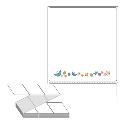 롤라벨보다 편리한 제트라벨, 규격코드: ZL9099, 디자인코드: DP091(봄날의 메신저. 나비, 벌, 꽃), 90 x 98.6 (mm)