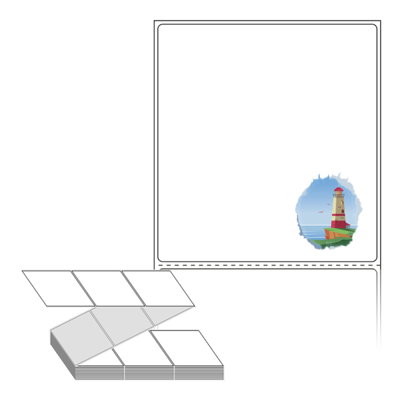 텍스트, 이미지, 도형, 바코드 등을 쉽게 출력 할 수 있으며 엑셀파일 등의 연동도 가능합니다. 라벨 모양대로 이미 칼선이 있기 때문에 출력 후 바로 떼어서 사용 하시면 됩니다.