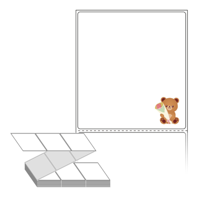 롤라벨보다 편리한 제트라벨, 규격코드: ZL9099, 디자인코드: DV031(꽃을 든 곰씨), 90 x 98.6 (mm)