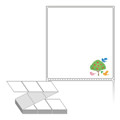 롤라벨보다 편리한 제트라벨, 규격코드: ZL9099, 디자인코드: DV057(나무와 행복한 새들), 90 x 98.6 (mm)