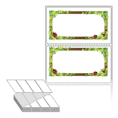 디자인 라벨/디자인 태그는 칼선만 들어가 있는 기존 제품과 달리, 프레임, 캐릭터, 배경 등이 특수 장비를 통해 뛰어난 품질로 미리 인쇄가 되어 있는 제품입니다. 인쇄가 되어 있지 않은 부분만 디자인 해서 프린터에서 출력하여 사용 하시면 됩니다.